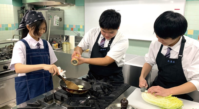 食生活・環境・健康・情報など、総合的に学習します。いろんなことに幅広くチャレンジをし、自分が得意なこと、好きなことを見つけ、将来のライフスタイル像について考えよう。