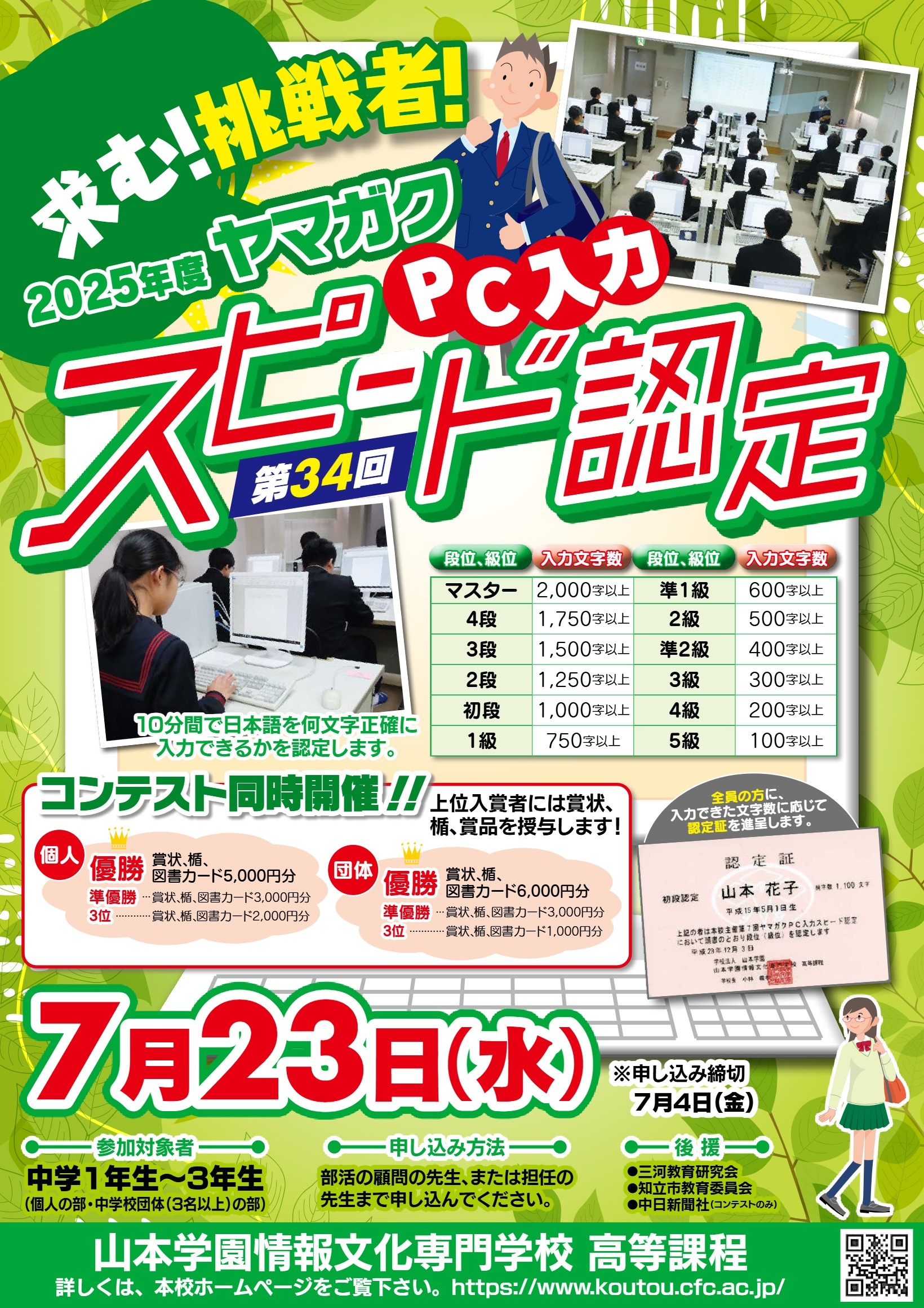 第34回 ヤマガクPC入力スピード認定結果はこちらをクリック
